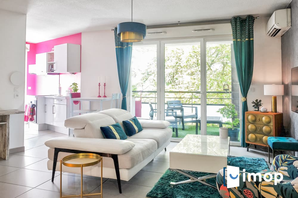 Une pièce de vie lumineuse de 30 m² avec accès à une terrasse exposée plein sud